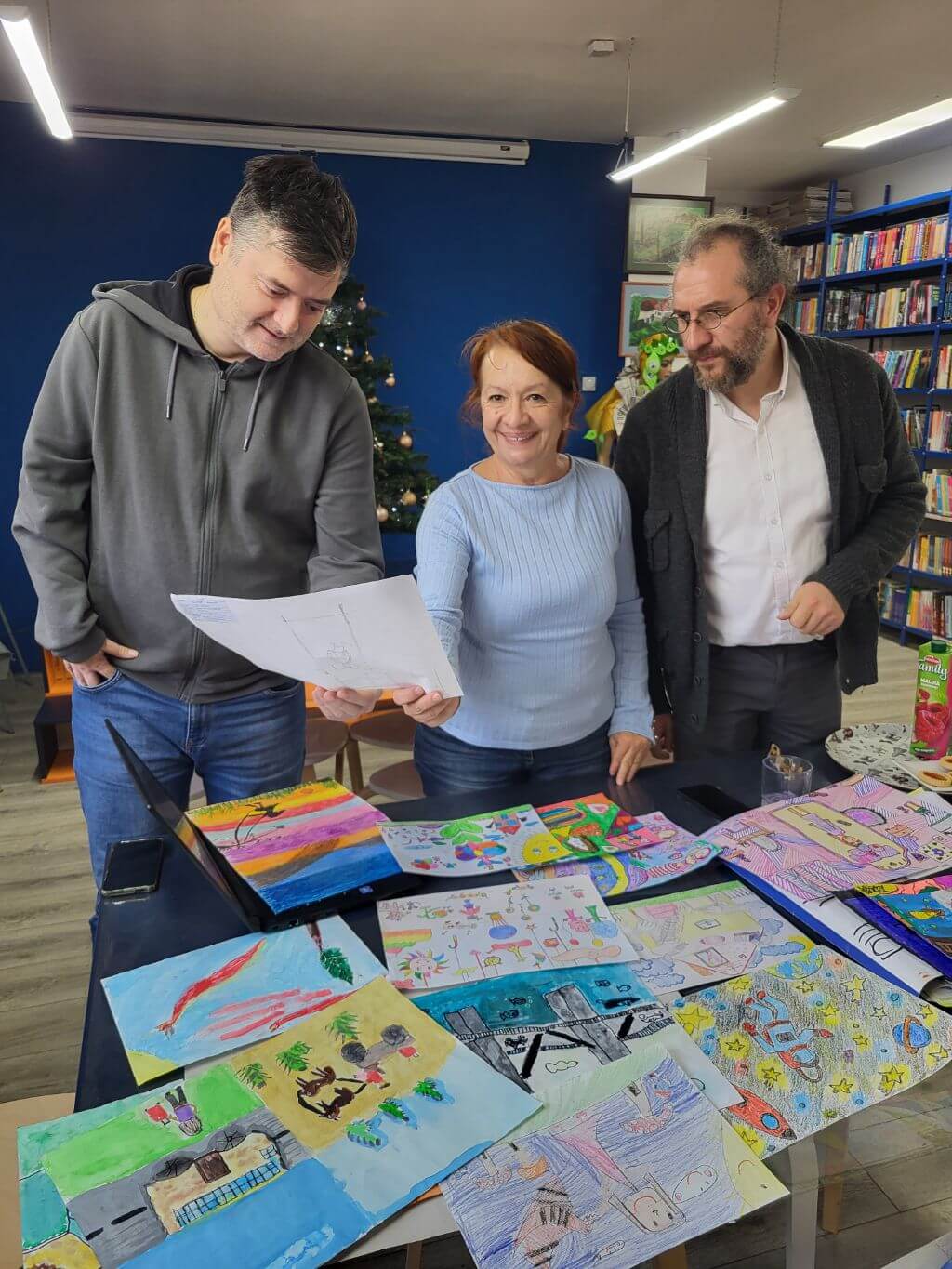 Жирирање ликовних радова пристиглих на конкурс “Моје снове машта плете”, у оквиру 6. Фестивала дечјег стваралаштва “Уметник из школске клупе”.Жири ликовног конкурса Дејан Недељковић, дипл.